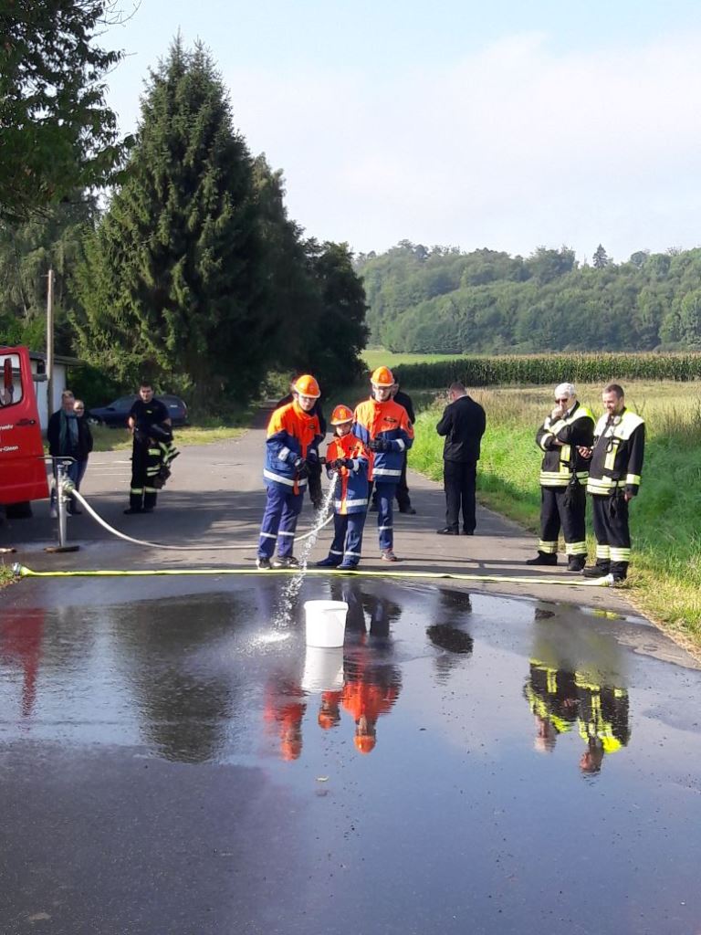Neben dem Umgang mit den Funkgeräten mussten die Kinder und Jugendlichen feuerwehrtechnische Aufgaben lösen und sportliche Herausforderungen meistern. So galt es an der Bach Gegenstände über das Wasser zu befördern, eine Saugleitung fehlerfrei aufzubauen sowie Knoten und Stiche der Feuerwehr zu präsentieren.