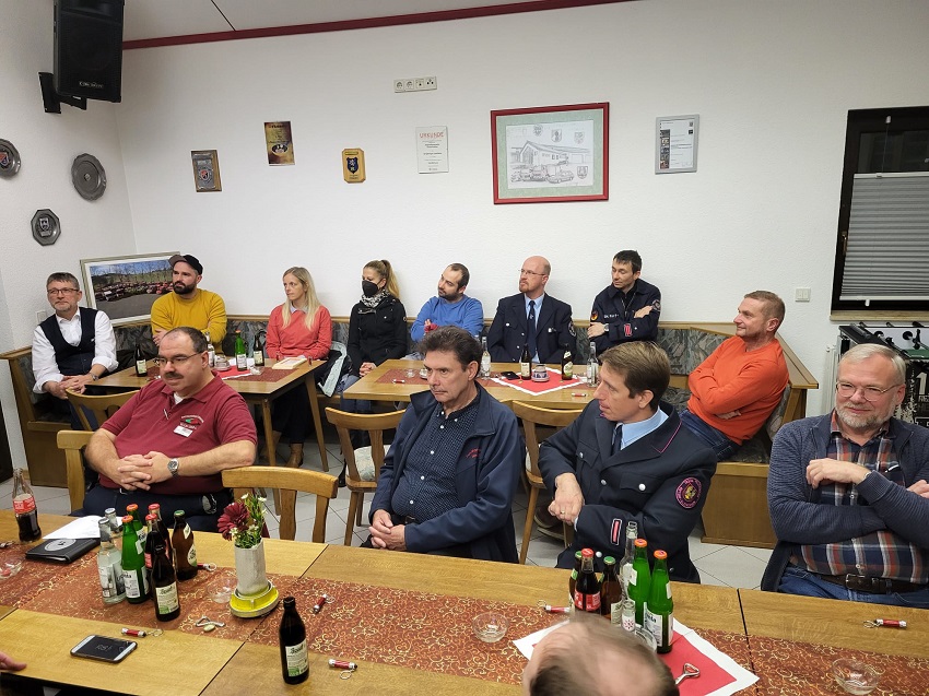Die Fachbereichsleiterin Susanne Sturm konnte unter den Gästen Bürgermeister Andreas Fey, die Koordinatorin des Vogelsbergkreises für Brandschutzerziehung Heidi Schmidt, die Initiatoren des Kreises aus den 90er Jahren Armin und Manfred Kropp und den Stadtbrandinspektor begrüßen. Außerdem die Leitung des Kindergartens mit Herrn Bonnard und Frau Pfeil als auch die Konrektorin der Grundschule, Frau Vogelsberg. Besonders freute sie sich, dass die Begründer der Brandschutzerziehung aus dem Jahr 1997 alle anwesend waren. Dies waren Martin Weiß, Reinhold Wolf, Klaus Grein und Horst Köhler. In ihrem historischen Rückblick berichtete die Fachbereichsleiterin über die Anfänge mit Overheadprojektor, schwarz/weiß Folien und die Weiterentwicklung über Power Point, Beamer, voll elektronisches Rauchhaus und Räumungsübungen. Im Jahr 1998 kam die Handpuppe Mathilde dazu. Auch seien in 2003 die ersten Brandschutzaufklärungen mit den Landfrauenvereinen hinzugekommen. Die eine oder andere Anekdote wurde zum Besten gegeben. Das vollelektronische Rauchhaus war zu diesem Zeitpunkt einzigartig und wurde sogar bei einer Tagung des Landesfeuerwehrverbandes vorgestellt. Zwischenzeitlich organisierte Heino Becker die Brandschutzerziehung als auch die Räumungsübungen. Erstmalig wurden im Jahr 2014 Fachbereiche für Brandschutzerziehung und Atemschutz geschaffen. So wurde eine Fachbereichsleiterin für BE/BA ernannt. Der Verein Mensa Mittelhessen und die Deutsche Gesellschaft für das hochbegabte Kind in Marburg sind auf das Rauchhaus und die Brandschutzerziehung aufmerksam geworden. So kam es, dass im Jahr 2015 bei einem „Spielenachmittag“ die Brandschutzhelfer in Marburg in der Zweigstelle der Landesfeuerwehrschule im Einsatz waren. Durch die stetige Weiterentwicklung kam die Ausbildung von Brandschutzhelfern in Betrieben hinzu. Um den immer weiterwachsenden Aufgaben gerecht zu werden, schloss man sich mit Homberg, Mücke, Gemünden und Kirtorf zusammen und gründete die Brandschutzerziehung VB-West. Ein Löschtrainer konnte durch eine Spende gemeinsam angeschafft werden. Diese Zusammenarbeit brachte in 2020 die Anerkennung „Feuerwehr des Monats“ in der Zeitschrift Florian Hessen. Räumungsübungen in Kindergarten und Schule wurden ohne Ankündigung jährlich durchgeführt.