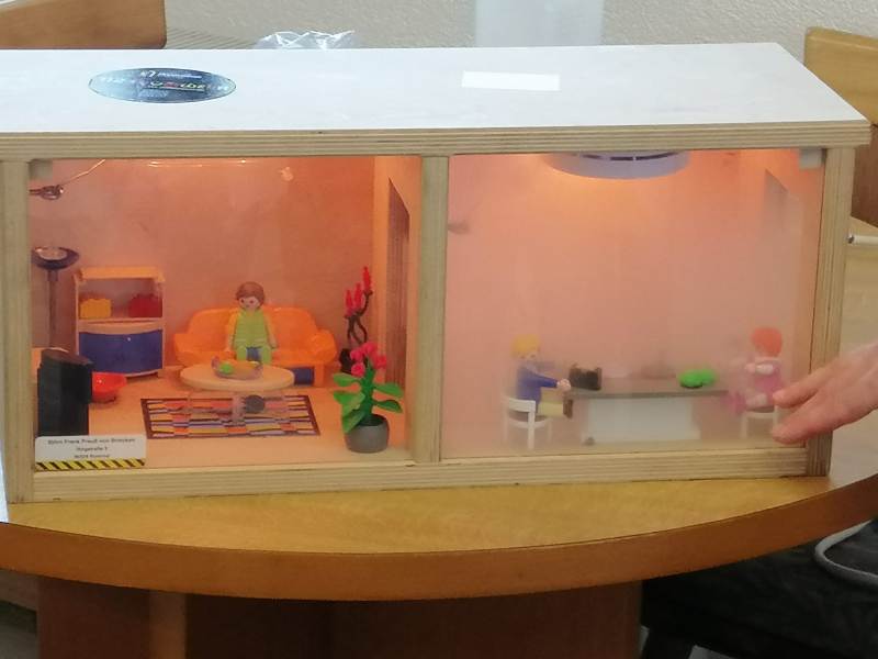 Nina Lemmer, Carolin Grein, Melanie Zarges-Graf stellten im „Rauchhaus“ eindringlich dar, wie sich Rauch in einem brennenden Haus ausbreitet. Was muss man tun, wenn man in einem brennenden Gebäude eingeschlossen ist? Was sollte man auf keinen Fall tun? Auch hier konnte man wieder anschaulich erklären, warum welches Verhalten erforderlich ist.