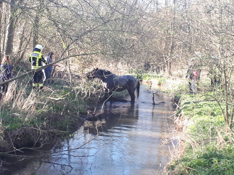 Um 16.35 Uhr alarmierte die Leitstelle des Vogelsbergkreises die Feuerwehren von Kirtorf zu einem eingeklemmten Pferd, in einem Brückengeländer. Ca. 100 Meter von der Borngasse in Ober-Gleen zum Gleenbach, war ein Pferd bei der Überquerung einer Brücke abgerutscht und zwischen dem Geländer eingeklemmt. Die Feuerwehr bereitete das Entfernen des Geländers vor. Ein Tierarzt wurde hinzu alarmiert. Eine Fachkraft für die Rettung von Großtieren wurde ebenfalls von der Einsatzleitung hinzugezogen. Glücklicherweise konnte sich das Pferd in dieser Zeit selbst befreien und viel in den Bach. Mit Feuerwehrleine und Hilfe der Besitzer konnte das Tier aus dem Bach geführt werden. Fachkraft als auch Tierärztin kümmerten sich dann um das Pferd.