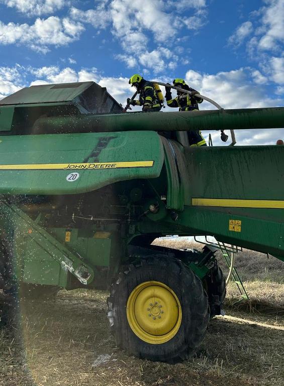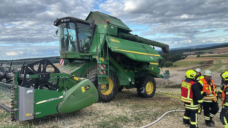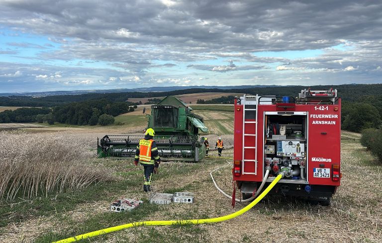 Um 17.29 Uhr alarmierte die Leitstelle des Vogelsbergkreises die Freiwilligen Feuerwehren der Stadt Kirtorf, zu einem brennenden Mähdrescher, nach Arnshain.