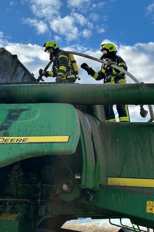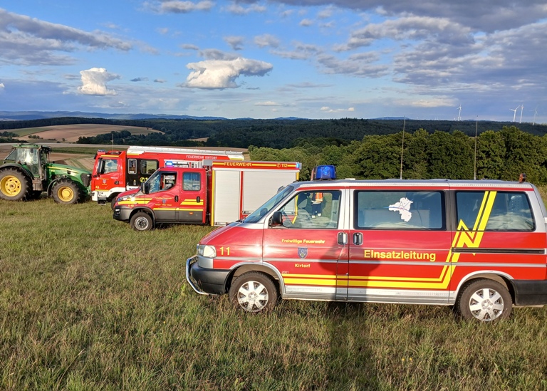 Beim Eintreffen der Arnshainer Wehr hatte der Fahrer, mit einem Pulverlöscher, bereits die ersten Löschversuche unternommen. Von der Feuerwehr wurde sofort ein Strahlrohr unter Atemschutz vorgenommen um den Brand unter Kontrolle zu bringen. Da sich das Brandobjekt in der Feldgemarkung befand wurden alle wasserführenden Fahrzeuge dorthin beordert. Weil das Tanklöschfahrzeug von Kirtorf-Mitte kaputt ist, mussten alle TSF-W koordiniert werden. Es handelte sich noch um einen Entstehungsbrand, der Löschangriff zeigte Erfolg und das Feuer konnte gelöscht werden und ein Übergreifen auf das noch nicht abgeerntete Feld verhindert werden.