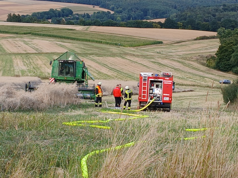 Heute wurden alle Wehren, der Stadt Kirtorf, zu einem Band, Einsatzstichwort: F LKW, brennt Mähdrescher, gegen 17.29 Uhr, nach Arnshain, alarmiert.