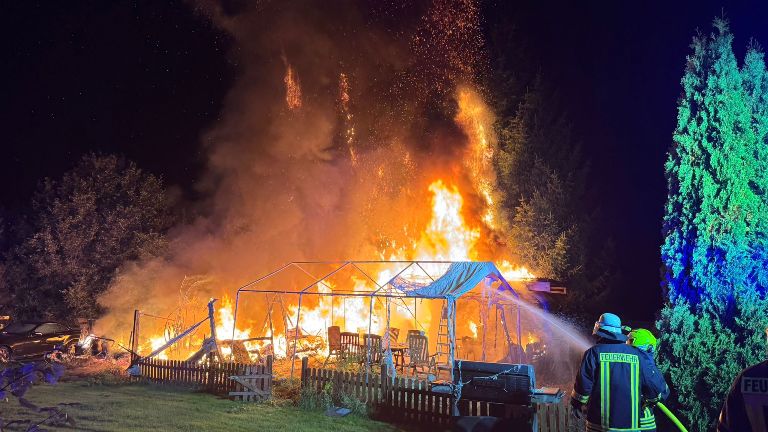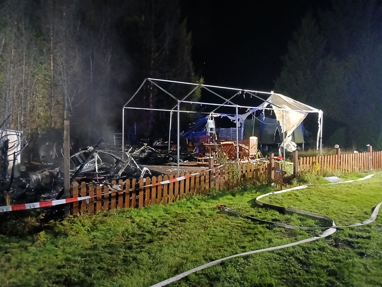 Alarm zu „Wohnwagenbrand mit vermisster Person“ auf dem Naturcampingplatz in Heimertshausen